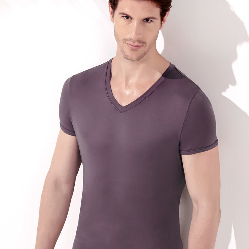 博尼夏季 纯色打底背心短袖 男士 V领修身 无痕 T恤内衣汗衫 Bonny