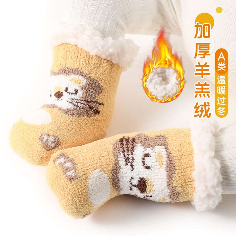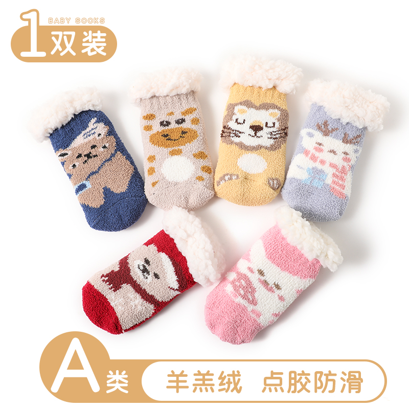 特价 婴儿袜子加绒加厚保暖新生儿童圣诞袜防滑宝宝地板袜 清仓冬季