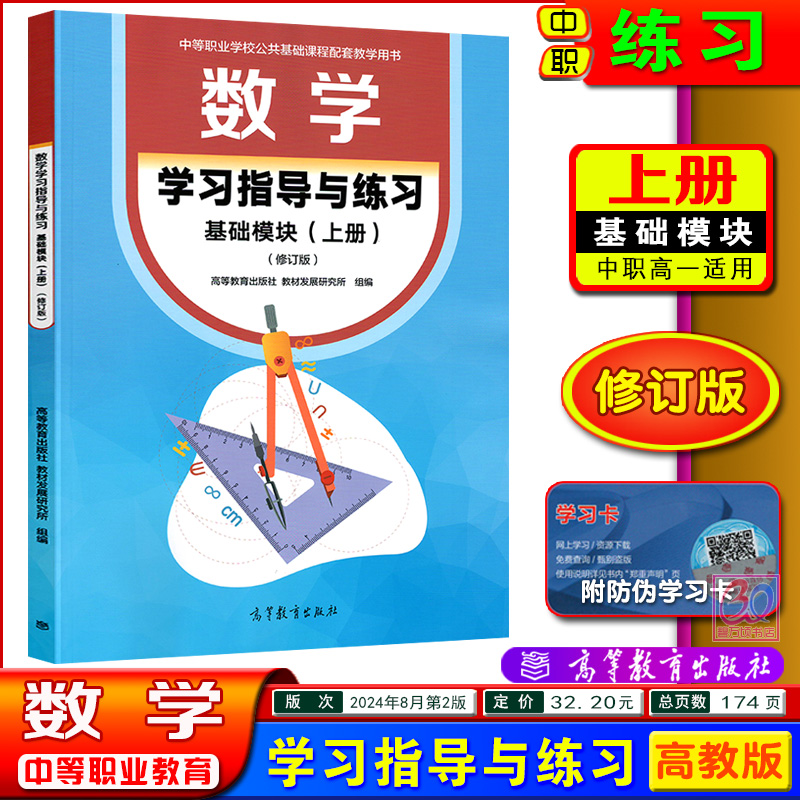 中等职业学校十四五教材配套用书职高一年级同步练习册高等教育出版 修订版 社 2025中职数学学习指导与练习基础模块上册第三版 高教版