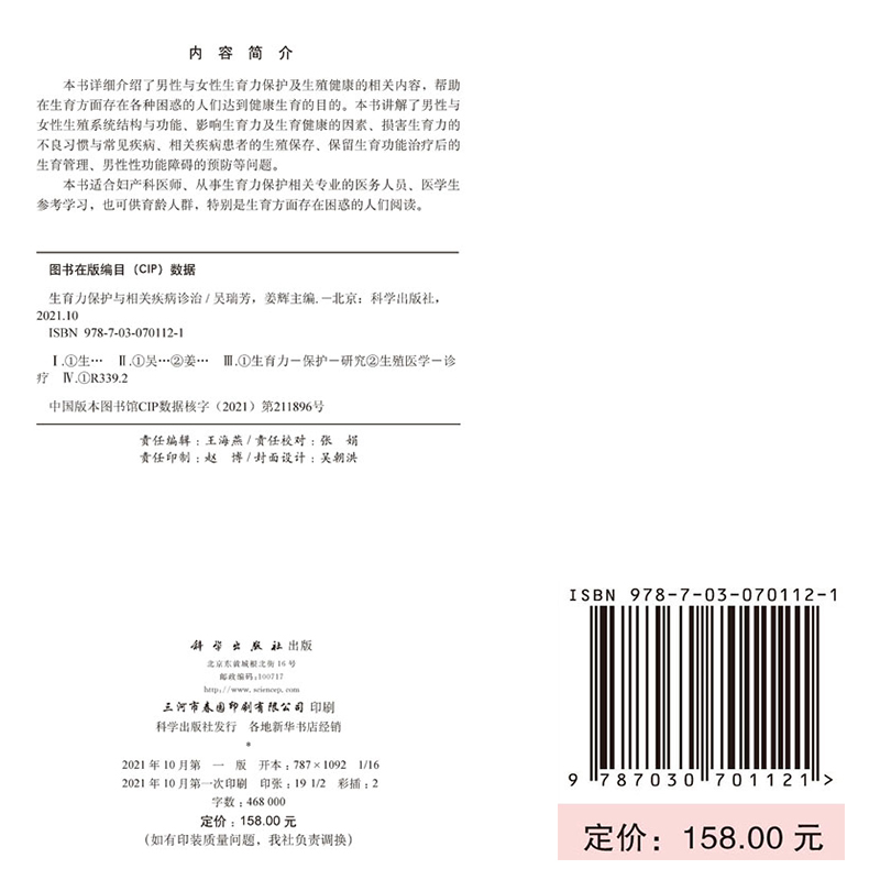 正版 社9787030701121 现货生育力保护与相关疾病诊治吴瑞芳姜辉主编科学出版