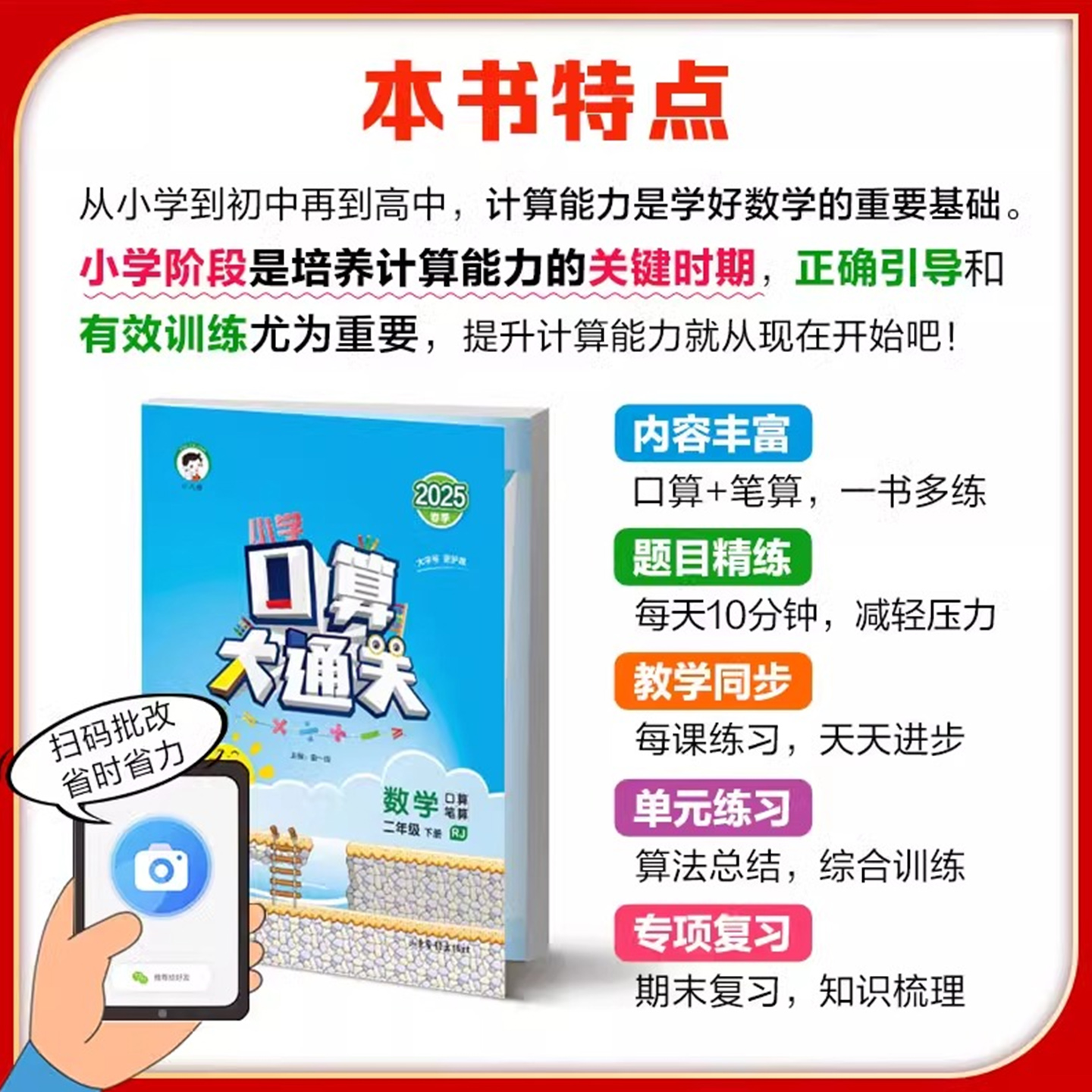 小儿郎2025秋版 苏教北师一二三四五六年级数学专项训练同步练习计算能手53天天练100道口算题卡 5.3口算大通关上下册小学数学人教版