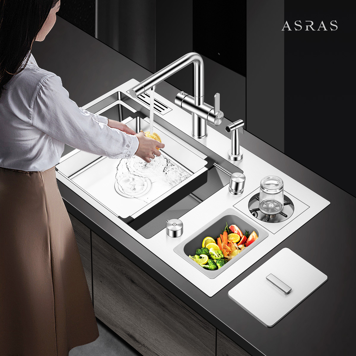 阿萨斯厨房洗菜盆洗杯器水槽不锈钢水槽大单槽手工水槽家用洗碗池