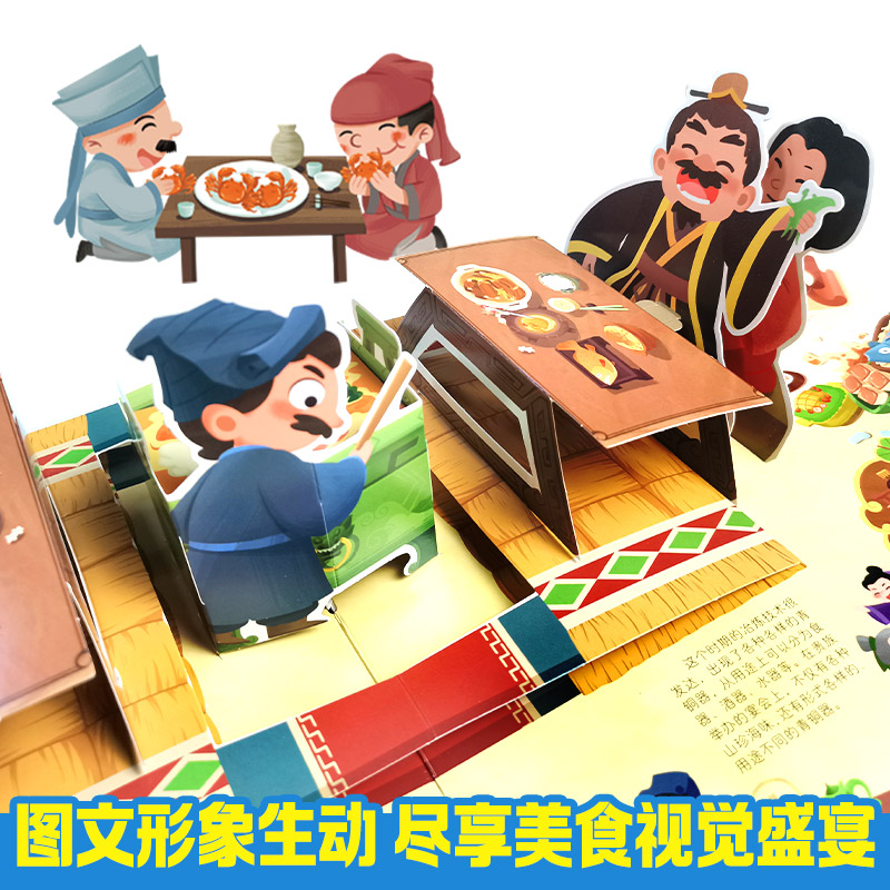 呦呦童饮食千年大千世界人文立体书中华饮食文化 演变过程3d立体翻翻书儿童早教启蒙绘本趣味情景认知翻翻书男女孩儿童生日礼物