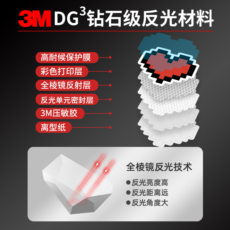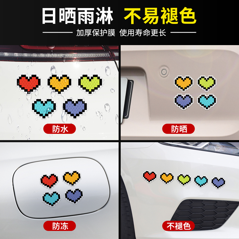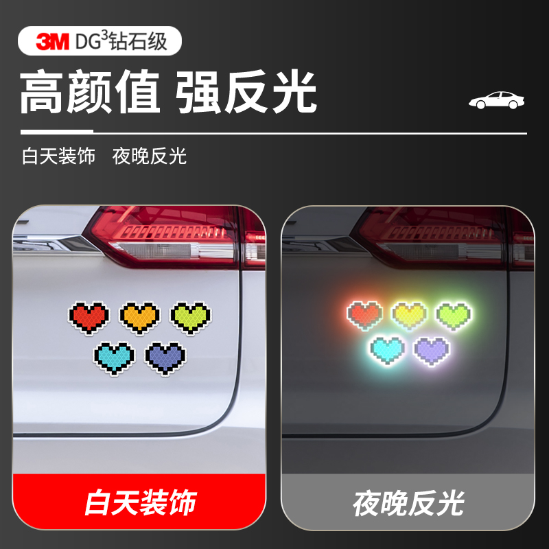 3M钻石级反光贴汽车装 饰划痕遮挡电动车夜间防撞警示贴五彩像素心