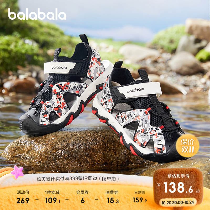 户外包头鞋 巴拉巴拉童鞋 子透气镂空2025夏新款 男童鞋 儿童运动凉鞋