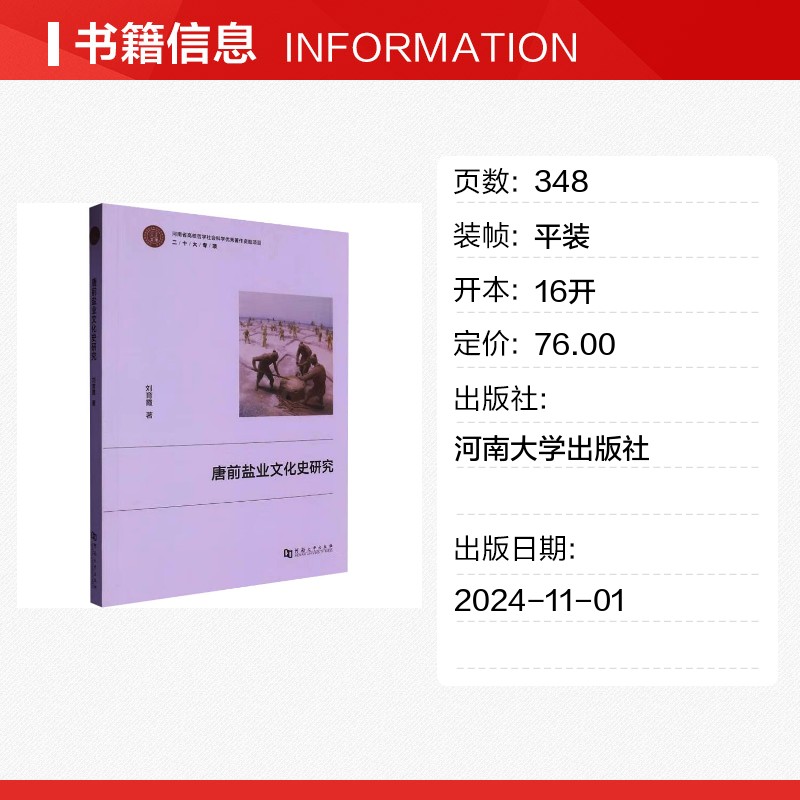 轻工业 手工业专业科技 新华书店正版 唐前盐业文化史研究 河南大学出版 著 图书籍 社 刘育霞