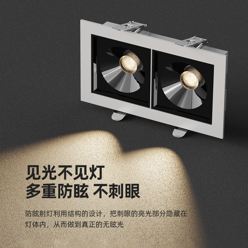超薄嵌入式 射灯家用客厅全光谱护眼led防眩光单双头3500k方形筒灯