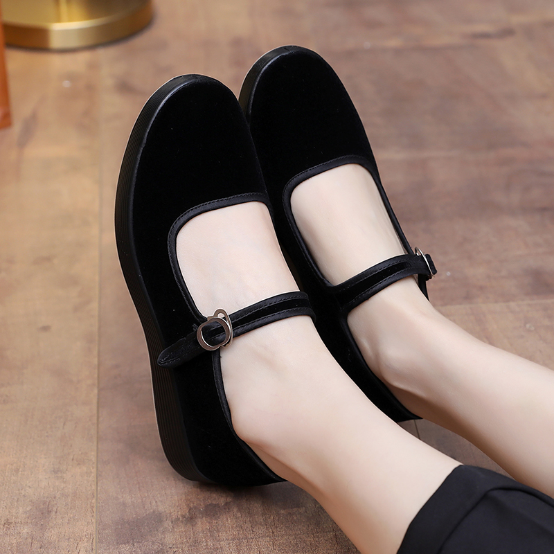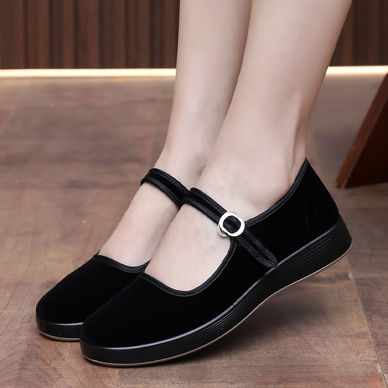 黑色工作鞋 妈妈鞋 舞蹈鞋 黑布鞋 老北京布鞋 女款 女防滑橡胶底保洁鞋