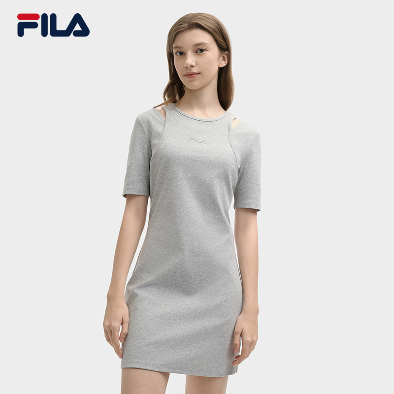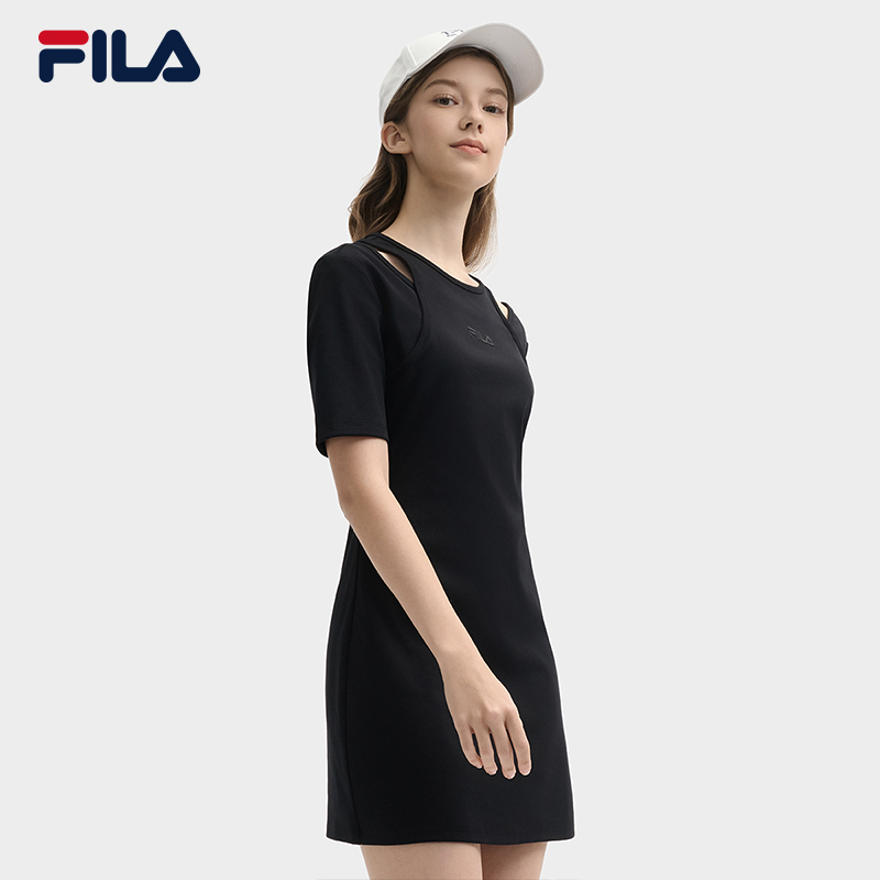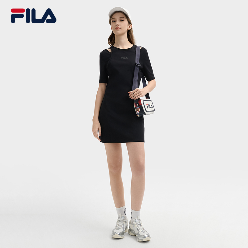 休闲修身 FILA 针织时尚 新款 收腰连身裙子女 斐乐连衣裙2025夏季