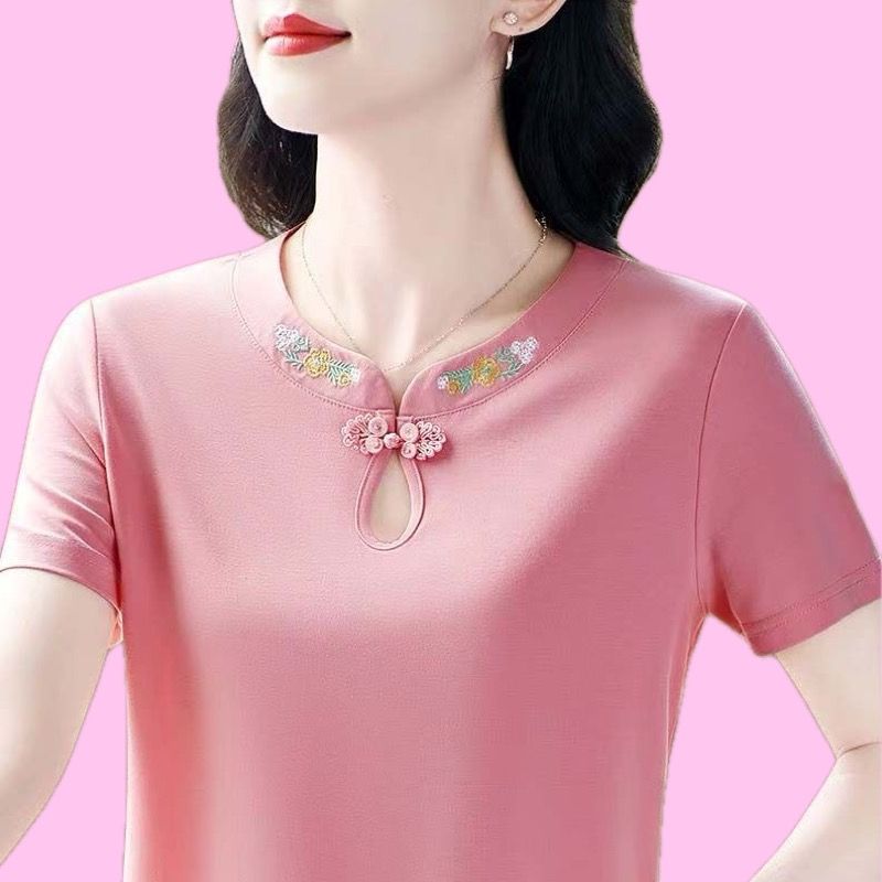 百搭中年妈妈装 t恤女士2025春夏新款 减龄圆领洋气上衣 短袖 新中式