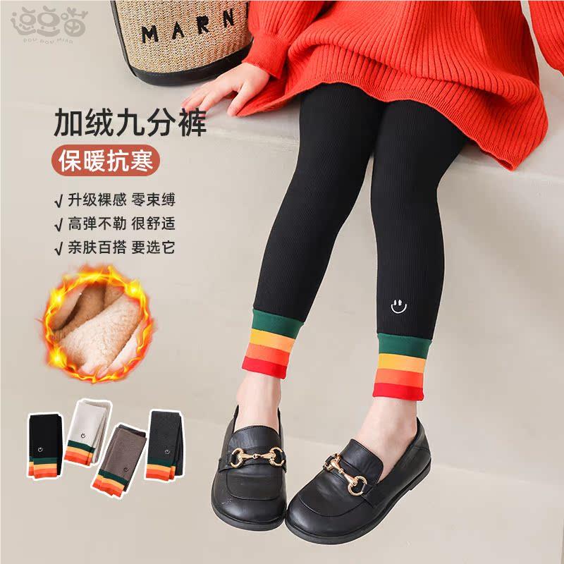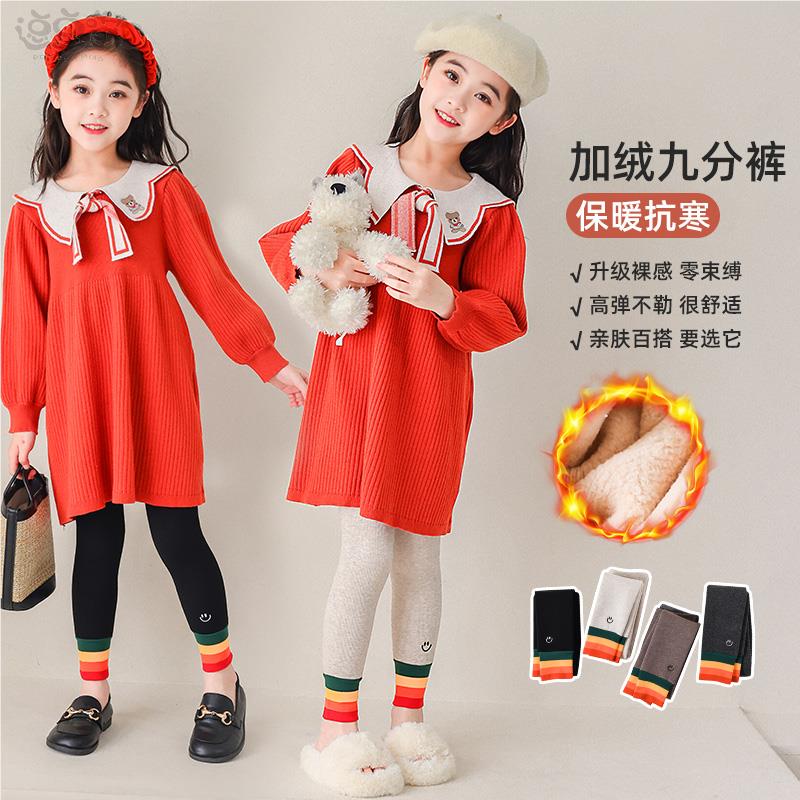 一体绒儿童外穿中厚洋气保暖裤 2023新款 加绒加厚秋冬季 女童打底裤
