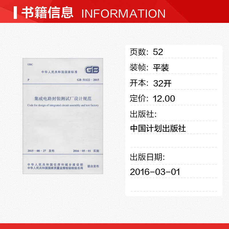 中华人民共和国国家质量监督检验检疫总局 中华人民共和国住房和城乡建设部 联合发布 测试厂设计规范 集成电路封装