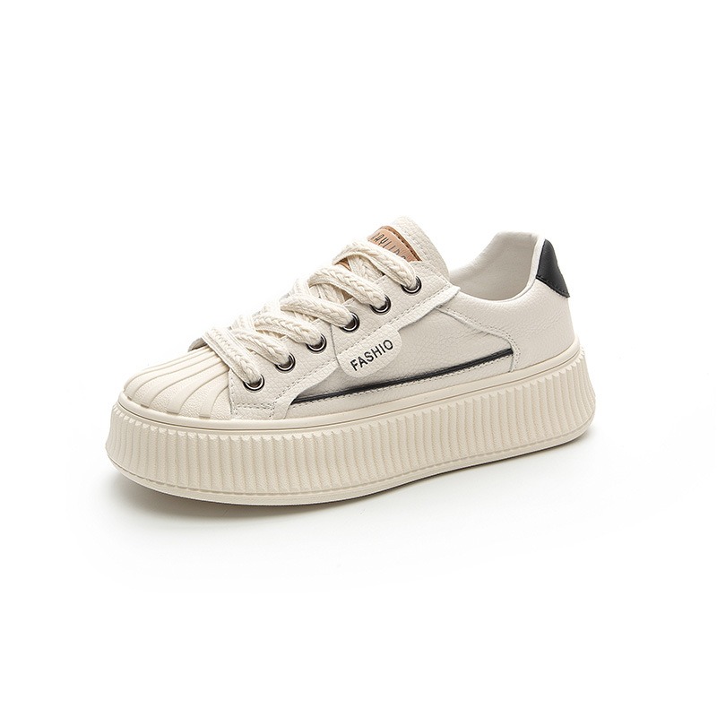 女2025年夏秋季 运动板鞋 新款 透气小白鞋 真皮厚底爆款 贝壳头饼干鞋
