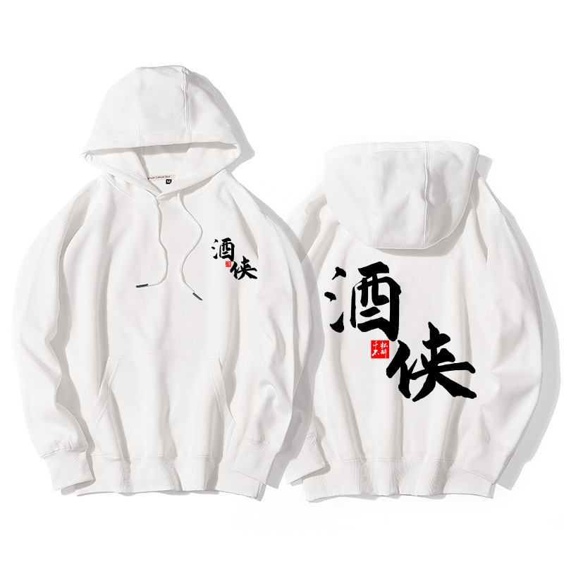 秀洛酒神文字衣服酒仙酒魔酒鬼文字恶搞连帽卫衣男国潮情侣装 外套