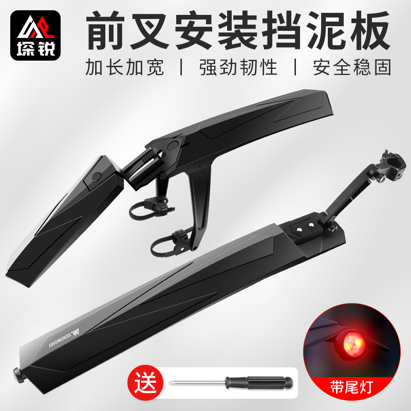 山地自行车挡泥板带尾灯单车前后挡泥瓦全包式 防雨水档板通用配件