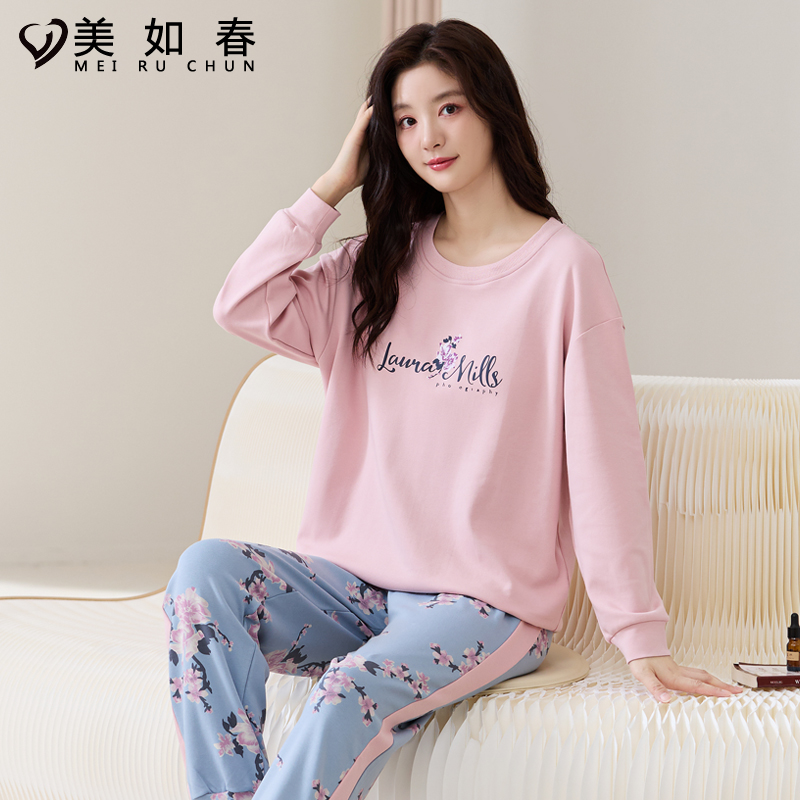 长袖 睡衣女款 纯棉休闲韩版 可外穿秋季 2025年新款 家居服套装 春秋款