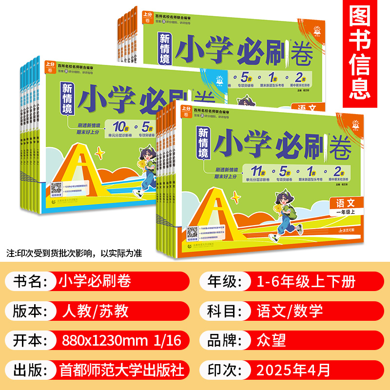 2025小学必刷卷必刷题上分卷三二一四五六年级上下册语文数学单元 检测卷学霸提优大试卷测试卷全套期末冲刺100分黄冈达标卷人教版