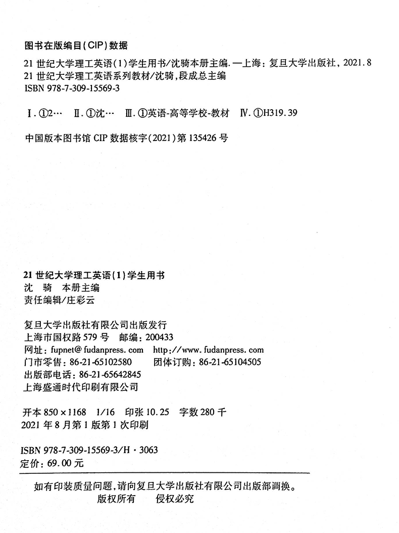 沈骑 学生用书 高校理工科英语能力与语言指导英语教材 复旦大学出版 9787309155693 21世纪大学理工英语 社