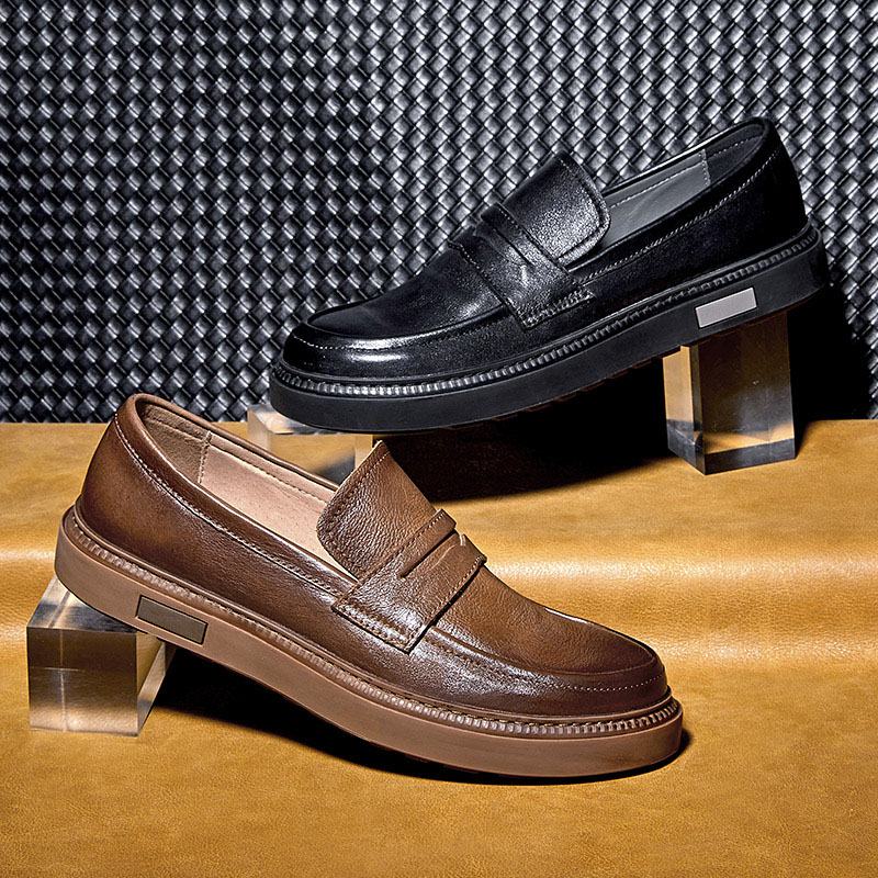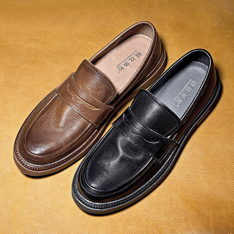 头层牛皮 真皮懒人鞋 班比帝伦手工平底休闲皮鞋 男一脚蹬豆豆乐福鞋