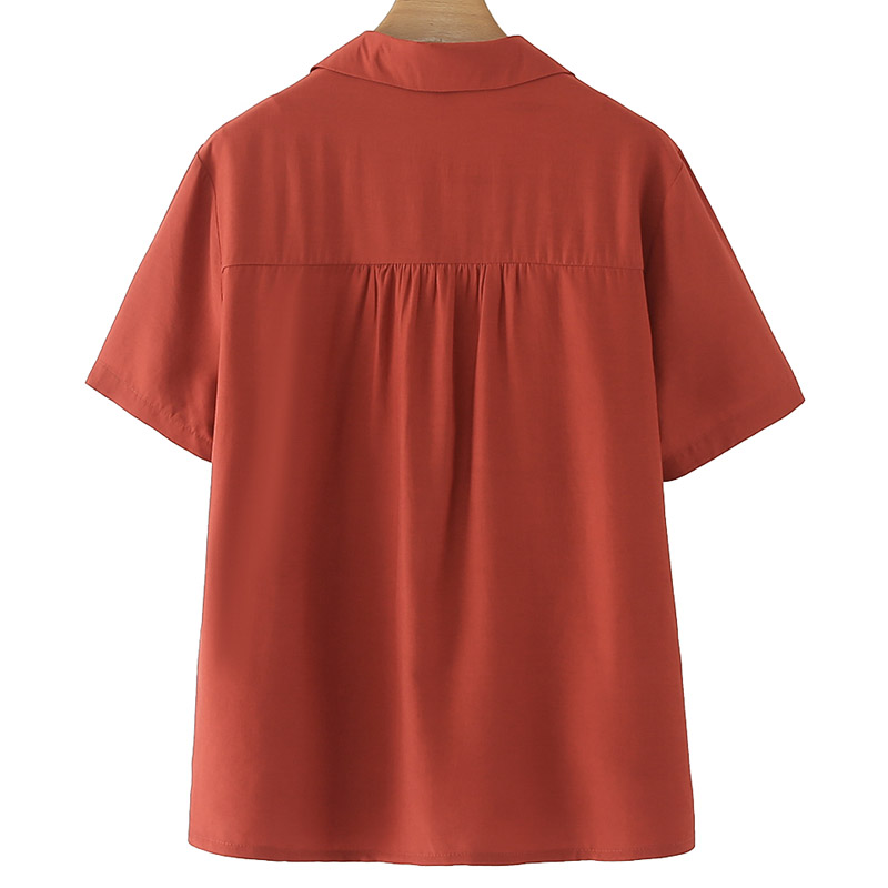 领短袖 胖妈妈夏季 衬衫 女装 T恤纯色休闲显瘦40岁遮肚子薄上衣 大码