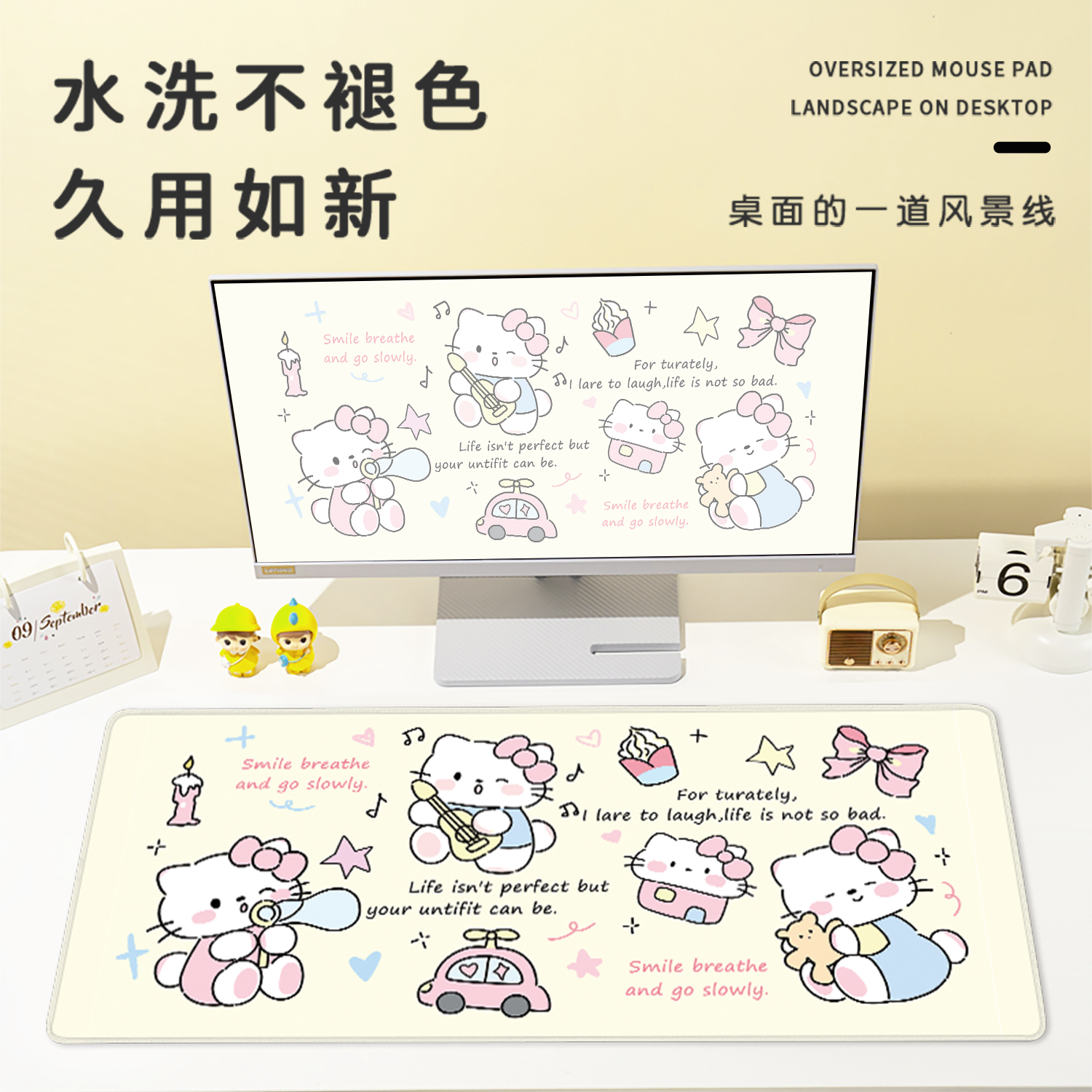 Hellokitty鼠标垫子女生可爱卡通电脑桌垫办公室超大键盘垫书桌垫