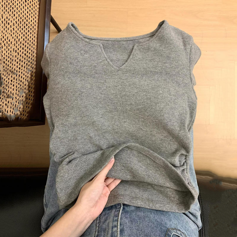 辣妹修身 设计感小众V领纯棉长袖 美式 打底衫 上衣 T恤女春秋内搭短款