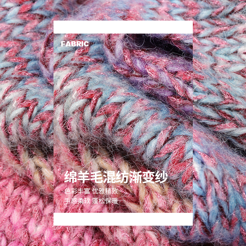 宽松保暖慵懒感内搭毛衣 新款 紫涵手工小象圆领羊毛针织衫 女冬季