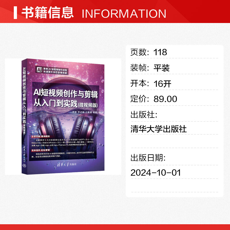 专业科技 图书籍 宋岩峰 图形图像 多媒体 编 李莹 王嘉熠 新华书店正版 AI短视频创作与剪辑从入门到实践 新 微视频版