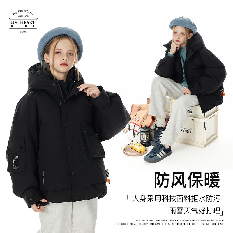 羽绒服女秋冬加厚保暖儿童羽绒外套冬季 日本LIV童装 女童连帽工装