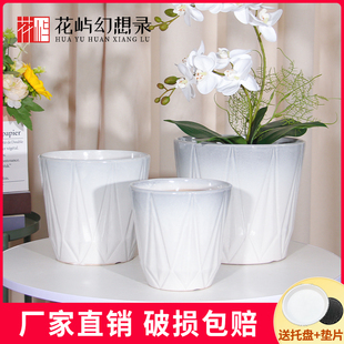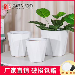 花盆陶瓷白色轻奢简约特价 清仓大号带托盘家用绿萝吊兰多肉小花盆