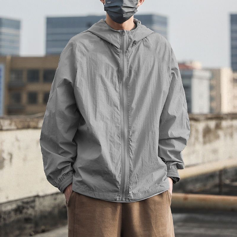 ohsunny防晒衣女连帽透气原纱宽松时尚 百搭户外连帽短外套防晒服