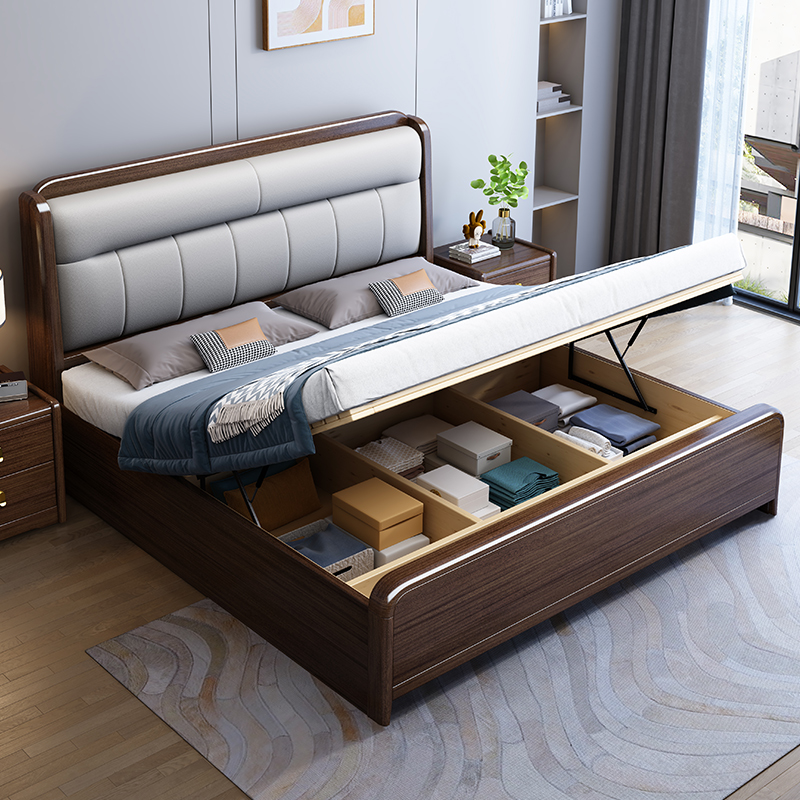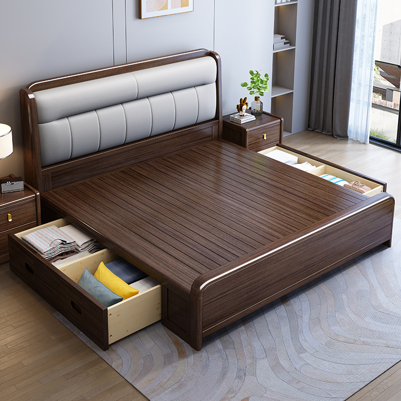 紫金檀木床1.8米双人软包真皮床卧室现代中式 抽屉储物1.5m实木床