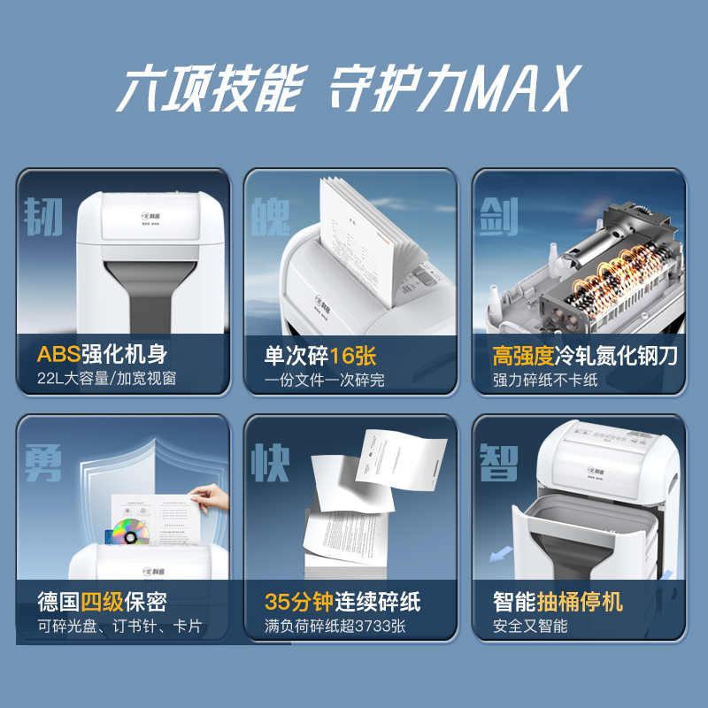 科密碎纸机办公室专用文件碎纸机商用大型电动碎卡碎光盘A4文件粉碎机22L大容量家用碎纸机4435 2025新款