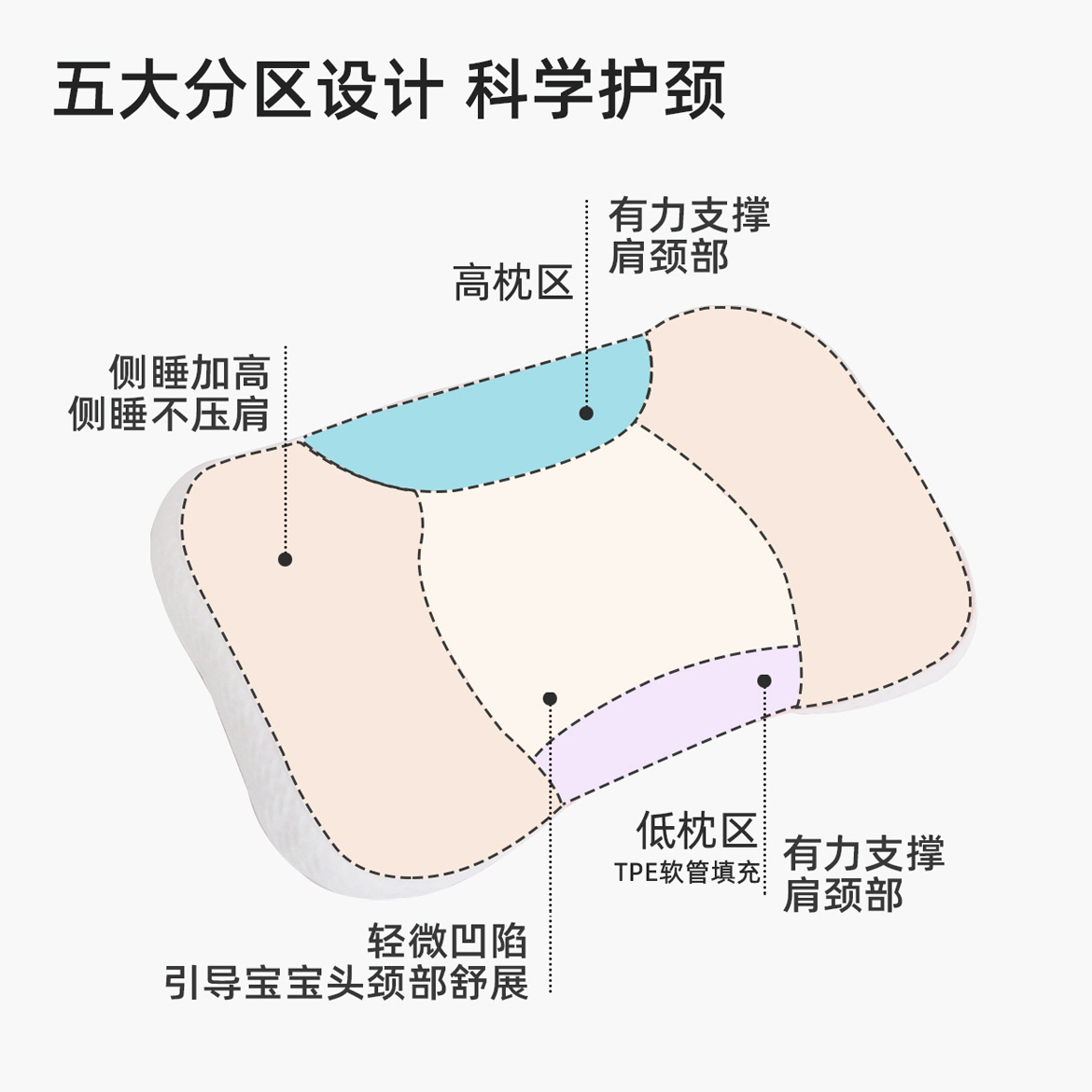 婴童多功能分区枕双面可用透气亲肤学生护颈枕