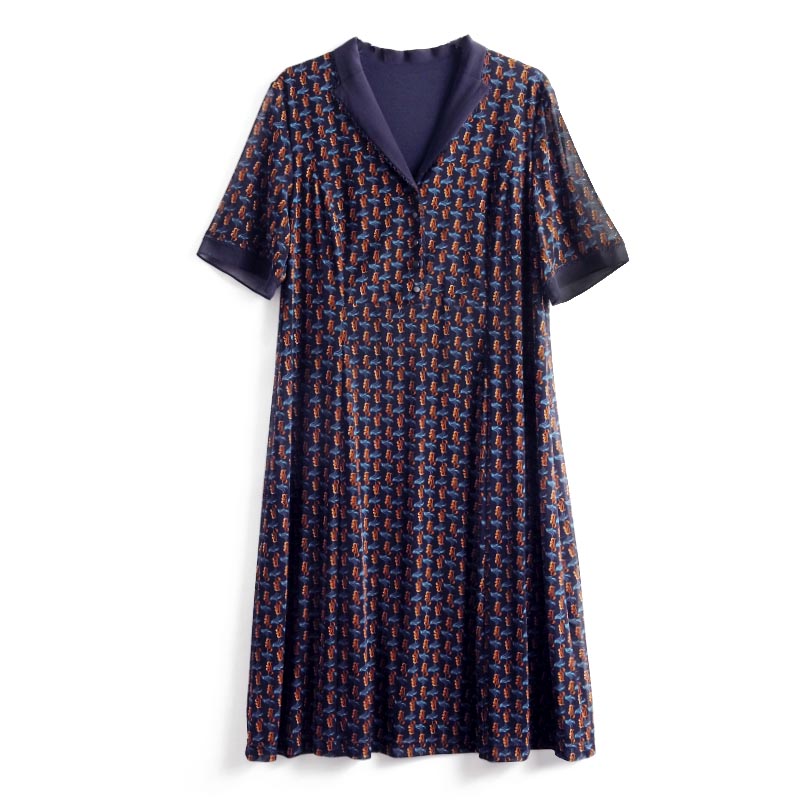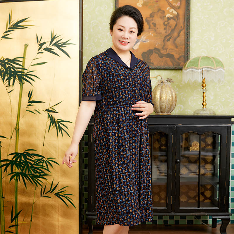 V领碎花通勤短袖 胖太太大码 新款 夏季 中长连衣裙潮324217340 女装