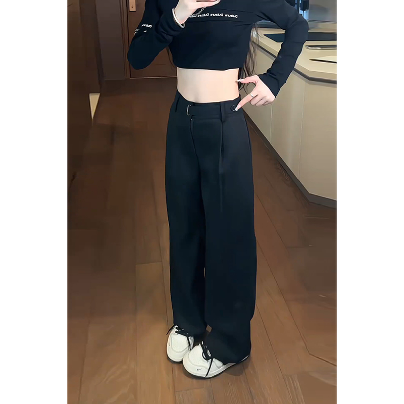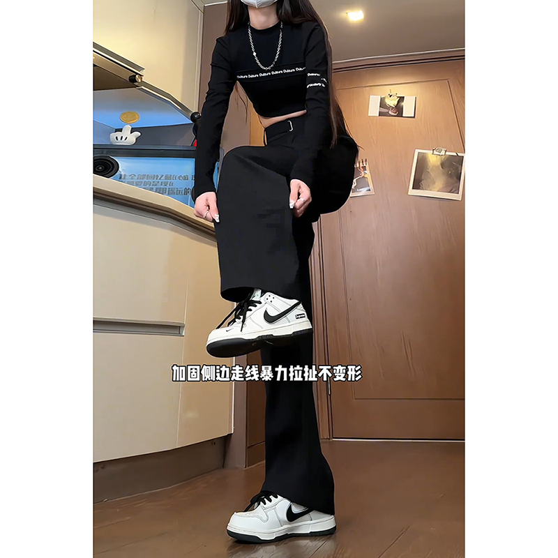 男女直筒微喇vibe裤 黑色休闲裤 子 高街cleanfit廓形西裤 CetKy美式