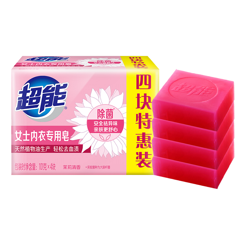 除菌去渍香味持久 内裤 超能内衣皂女士洗衣皂肥皂101g 4家用实惠装