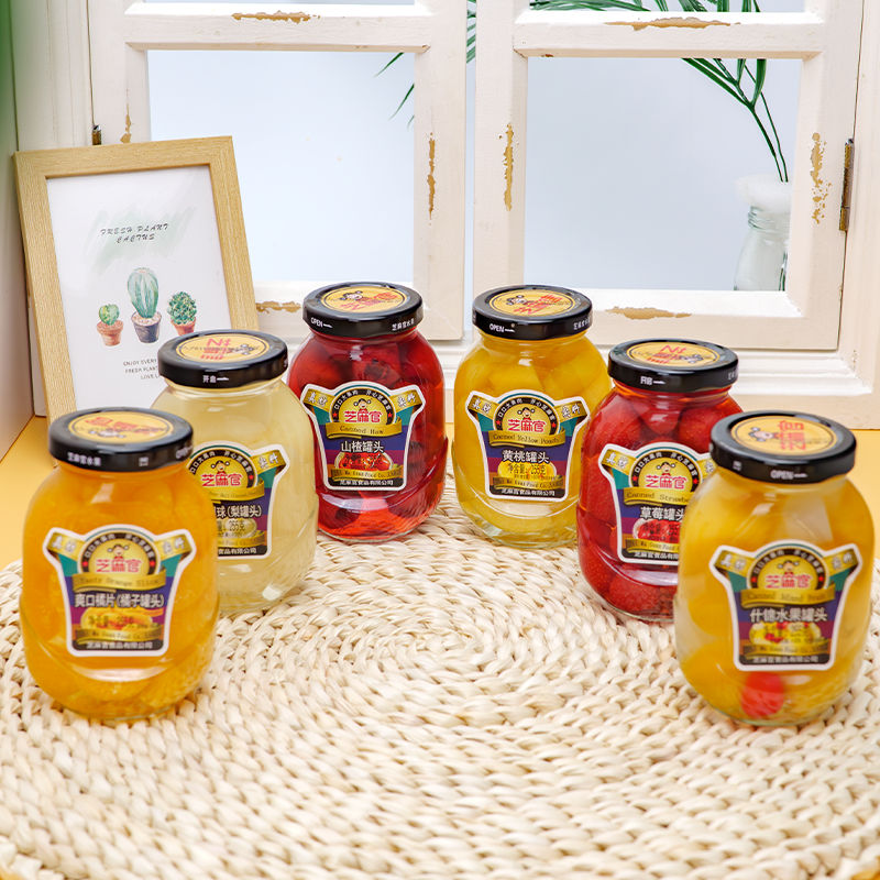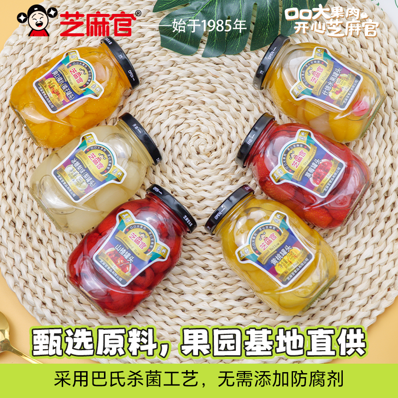 芝麻官黄桃罐头正品 6罐玻璃瓶山楂草莓什锦橘子山楂罐头 整箱255g