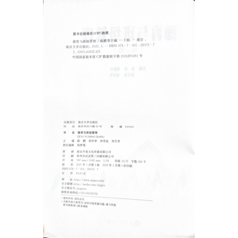 段作章 孙雪连 社 第三版 9787305283727 南京大学出版 陈鹏 编著 德育与班级管理 刘月芳