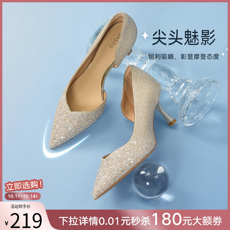 婚鞋 百思图2025夏季 中空女凉鞋 尖头细跟高跟鞋 RFK02BK5 商场新款