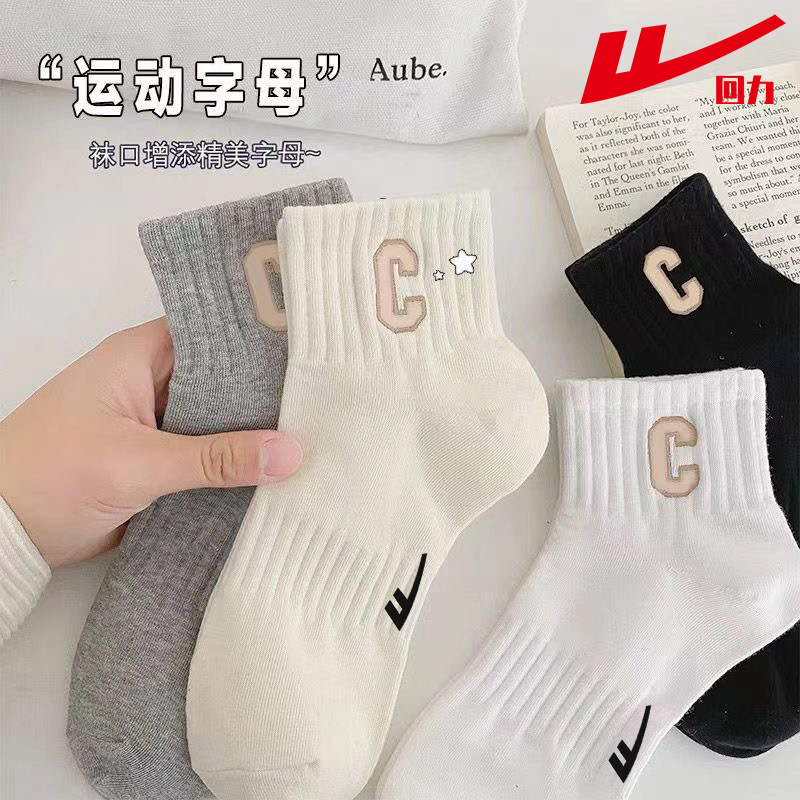 全棉短袜子女春秋季 中短筒袜无骨 纯棉吸汗防臭夏透气运动风秋冬款