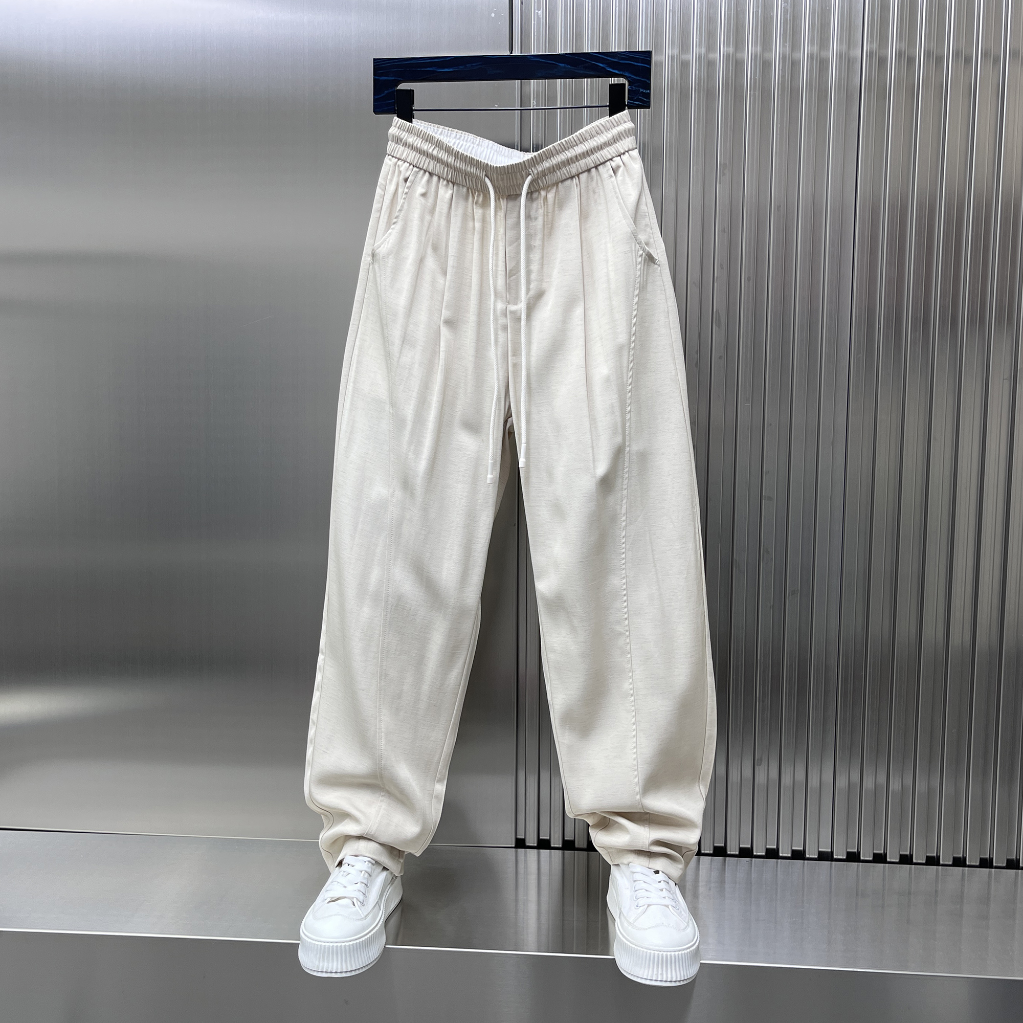 宽松潮流仿亚麻冰丝垂感长裤 2025夏季 男士 潮牌纯色直筒休闲裤 新款