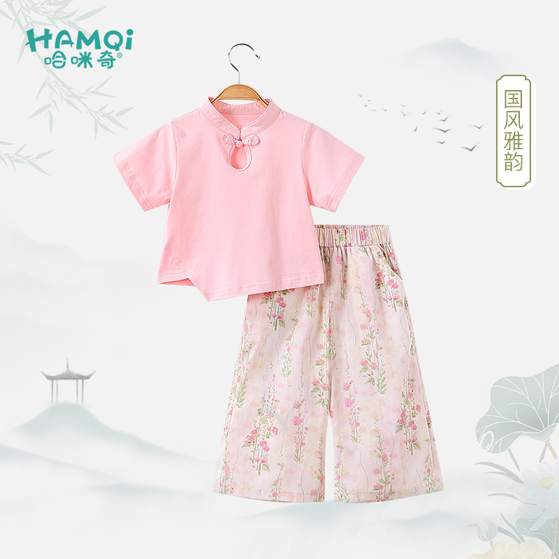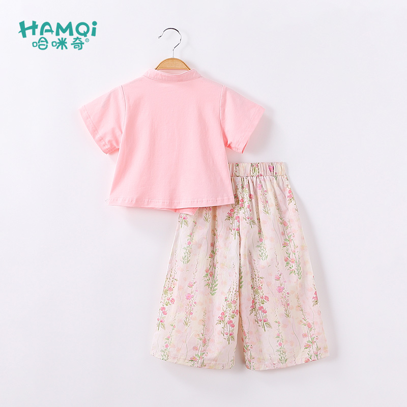 套装 女孩上衣九分裤 夏季 儿童新款 宝宝甜美两件套 童装 女童国风短袖