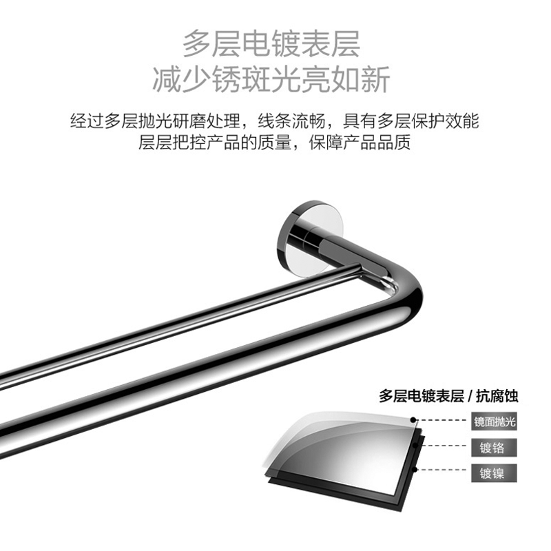 九牧正品 官方旗舰店双杆浴巾架毛巾架铝合金亮铝挂雅黑浴室置物架