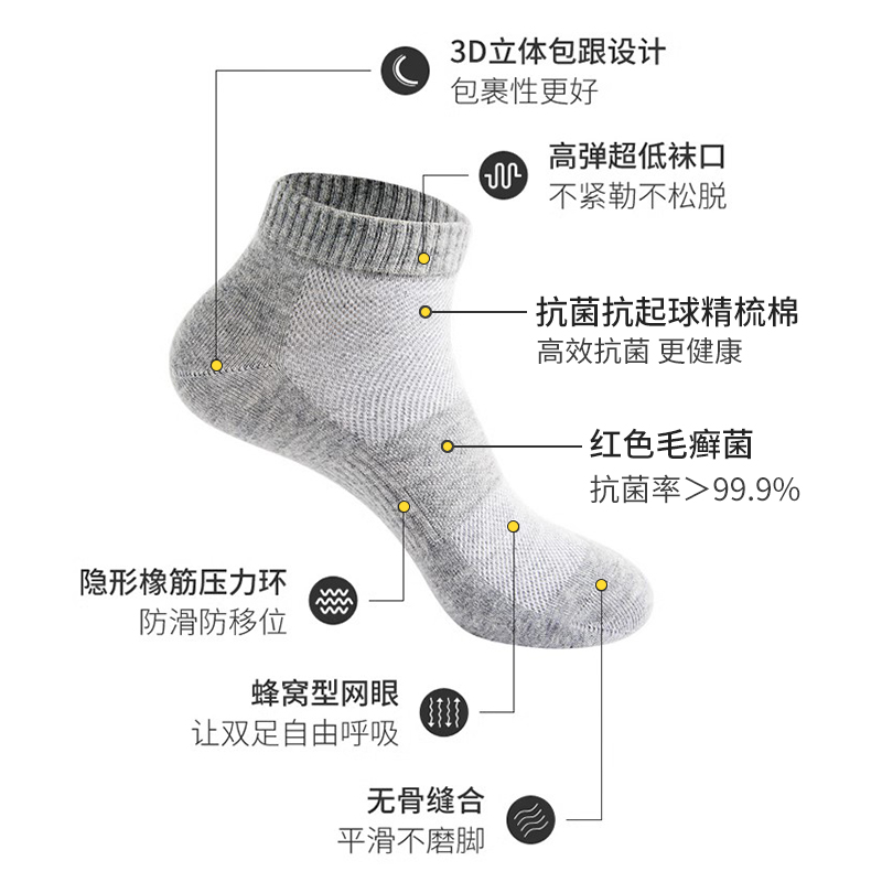 袜子男纯棉短袜春秋男款 运动袜 纯色袜商务袜7A抗菌吸汗防臭脚男士