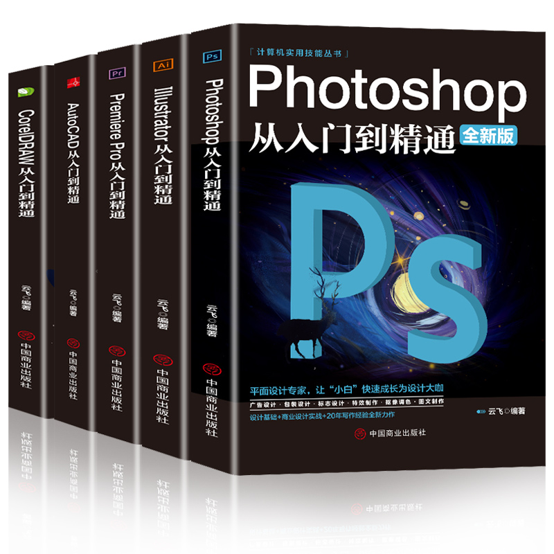 CDR 全套5册2021正版 CAD教程书籍从入门到精通完全自学抠图处理后期视频制作剪辑矢量制图和立体作图 ps教程零基础书籍PS