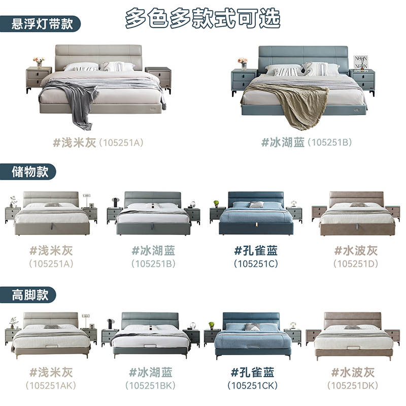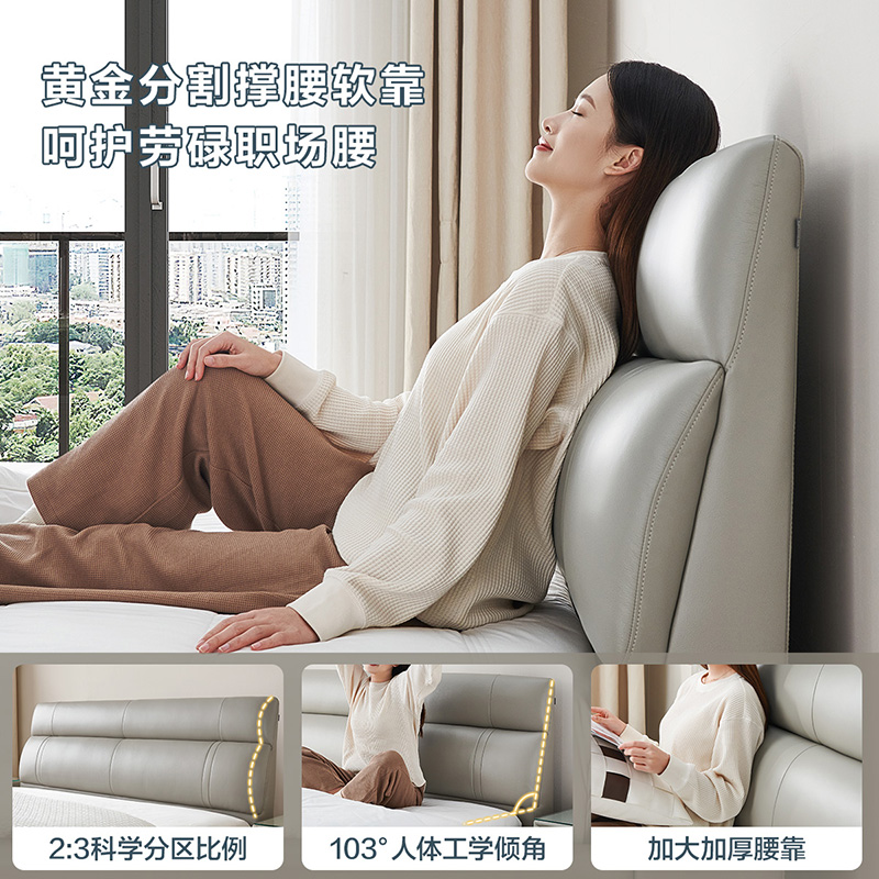 全友家居高端大气真皮主卧室大床1米8双人床2米x2米2悬浮婚床家具