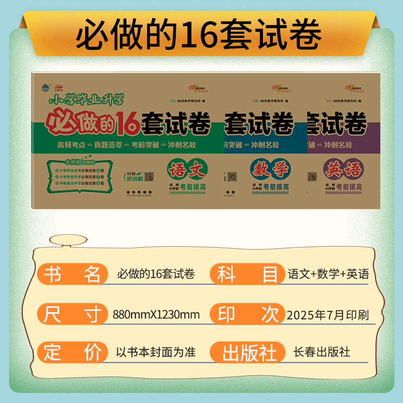 2026版 16套试卷语文数学英语小考真题小学升初中小升初专项训练小考模拟测试卷真题卷必刷题 68所名校小学毕业升学必做