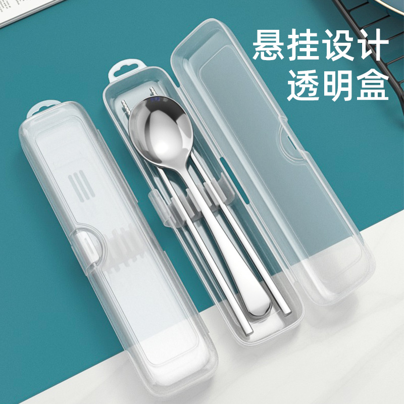 便携餐具盒空盒旅行便携外带筷子收纳盒挂钩学生儿童塑料透明盒子