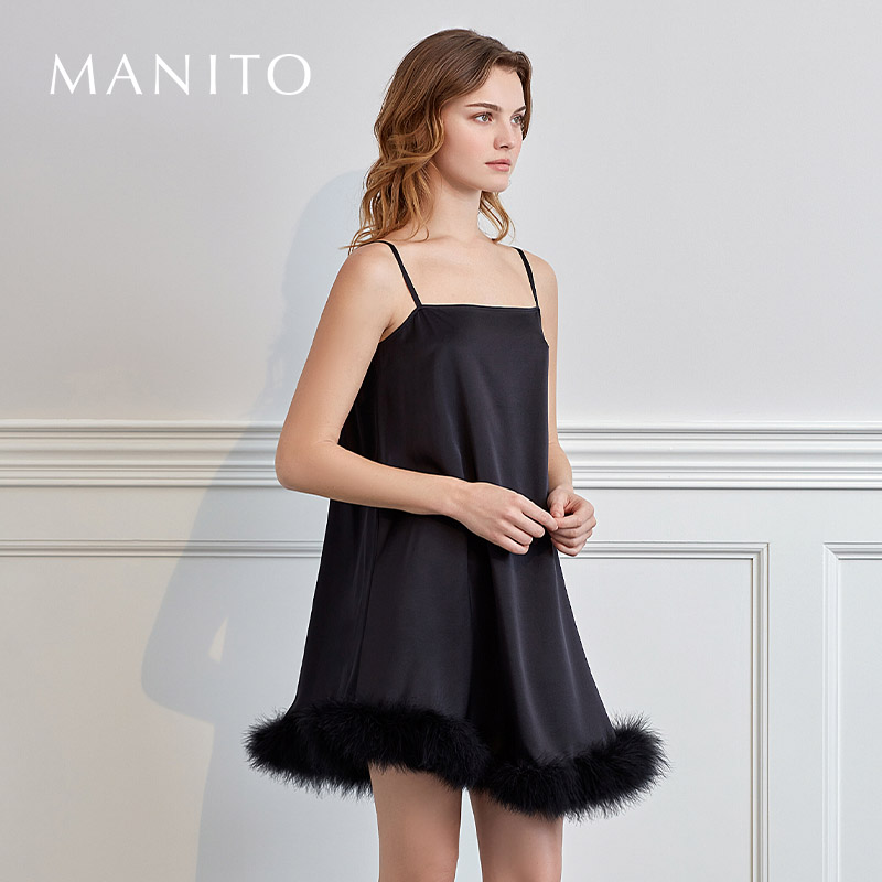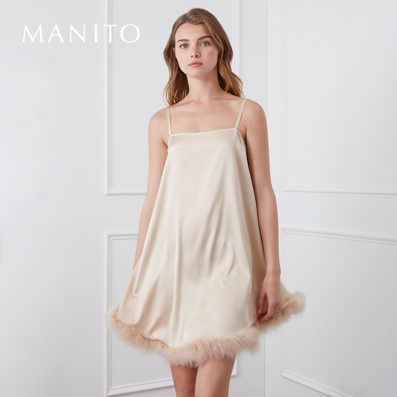 蕉内棉棉300Sleep女款 女士吊带睡裙 睡衣带杯带胸垫莫代尔冰丝短袖